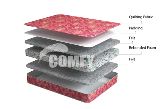 Comfy felt foam has much higher resilience and itself to better flexibility, thus offer pressure point comfort. It gives optimal body comfort and bounce.