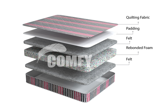 Comfy felt foam has much higher resilience and itself to better flexibility, thus offer pressure point comfort. It gives optimal body comfort and bounce.