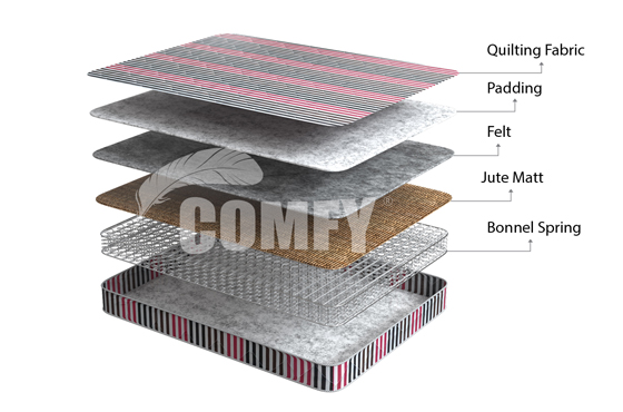 Bonnell springs are an interconnected mesh of spring coils. Bonnell spring systems are mainly used for back-pain relief and are excellent ortho-medical mattresses that can caress and support your back. It gives you constant relief by providing support to all the vulnerable areas as bonnell springs can uphold your spin in a natural position.