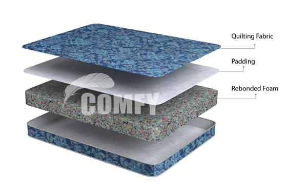 Rebonded Foam support your body and mould your body shape. Convoluted foam provides better ventilation and disperses body pressure. High-quality Rebonded Foam draw foam heat away from the body, mattress full keeping you cool during sleep. Coir foam provides a soft and breathable sleep surface with ultimate pressure point relief.